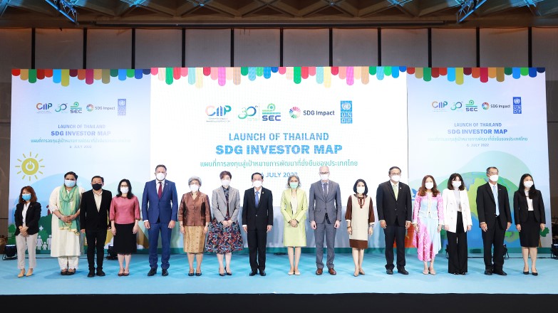 สำนักงานคณะกรรมการกำกับหลักทรัพย์และตลาดหลักทรัพย์ (ก.ล.ต.) ร่วมกับโครงการพัฒนาแห่งสหประชาชาติประจำประเทศไทย (UNDP) เปิดตัวแผนที่การลงทุนเพื่อการพัฒนาที่ยั่งยืน (SDG Investor Map) แพลตฟอร์มข้อมูลที่เปิดโอกาสให้ผู้ลงทุนและภาคธุรกิจที่ให้ความสำคัญต่อการลงทุนเพื่อบรรลุเป้าหมายการพัฒนาที่ยั่งยืนได้พบกับโครงการธุรกิจที่ได้รับการจัดอันดับแล้วว่าตอบโจทย์นโยบายของภาครัฐและมีโอกาสการเติบโตทางการตลาด ซึ่งได้รับเกียรติจากนายอาคม เติมพิทยาไพสิฐ รัฐมนตรีว่าการกระทรวงการคลัง กล่าวปาฐกถาพิเศษ โดยนางสาวรื่นวดี สุวรรณมงคล เลขาธิการ ก.ล.ต. ร่วมกับ Ms. Kanni Wignaraja ผู้ช่วยเลขาธิการ UN และผู้ช่วยผู้บริหารและผู้อำนวยการ สำนักงานภูมิภาคเอเชียและแปซิฟิก, UNDP, และ Ms. Gita Sabharwal ผู้ประสานงาน UN กล่าวต้อนรับผู้เข้าร่วมงาน เมื่อวันที่ 6 กรกฎาคม 2565 ณ โรงแรมไฮแอท รีเจนซี สุขุมวิท