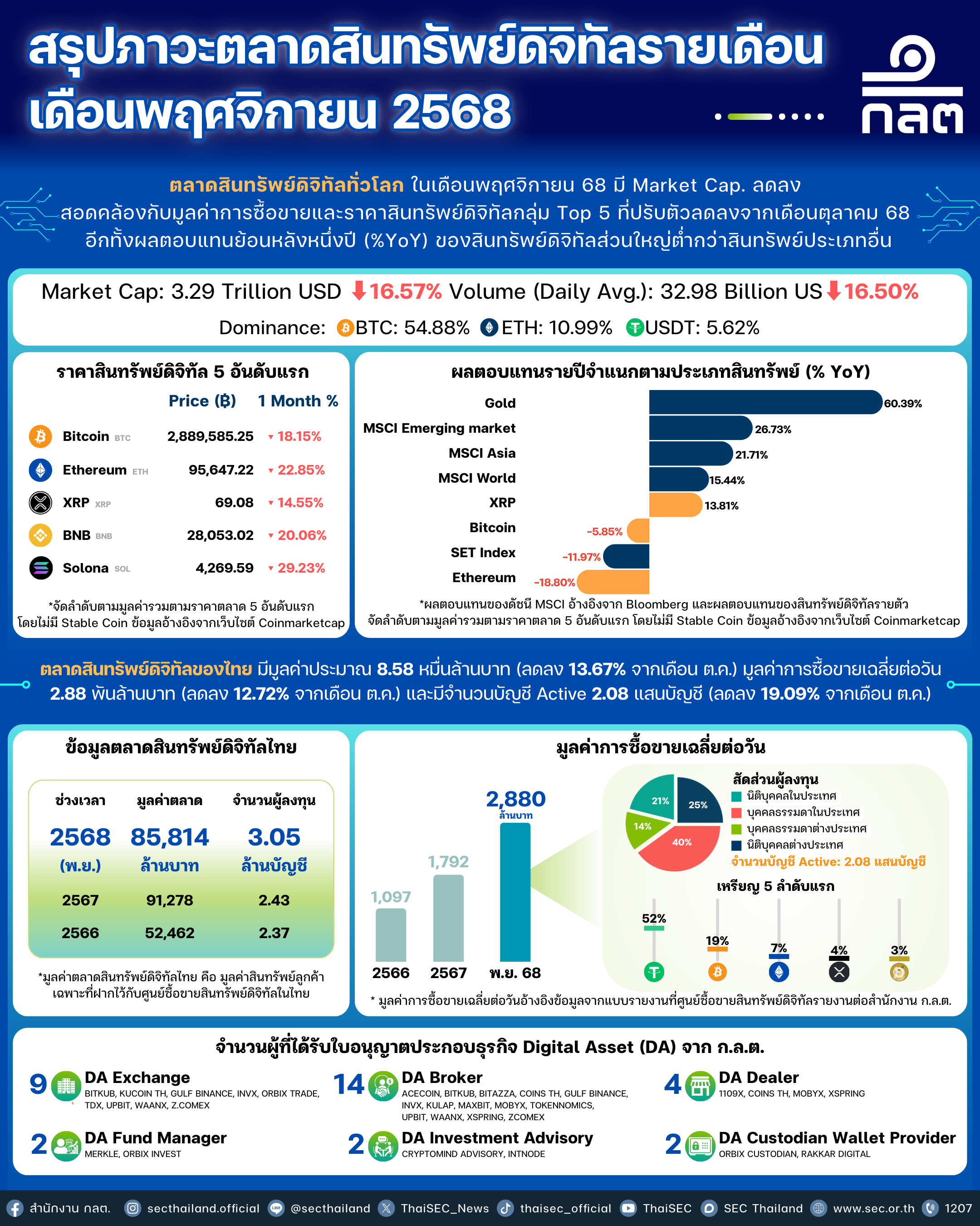 *ก.ล.ต. ปรับการรายงานภาวะตลาดสินทรัพย์ดิจิทัลจากรายสัปดาห์เป็นรายเดือน นับตั้งแต่วันที่ 8 พฤศจิกายน 2567 เป็นต้นไป