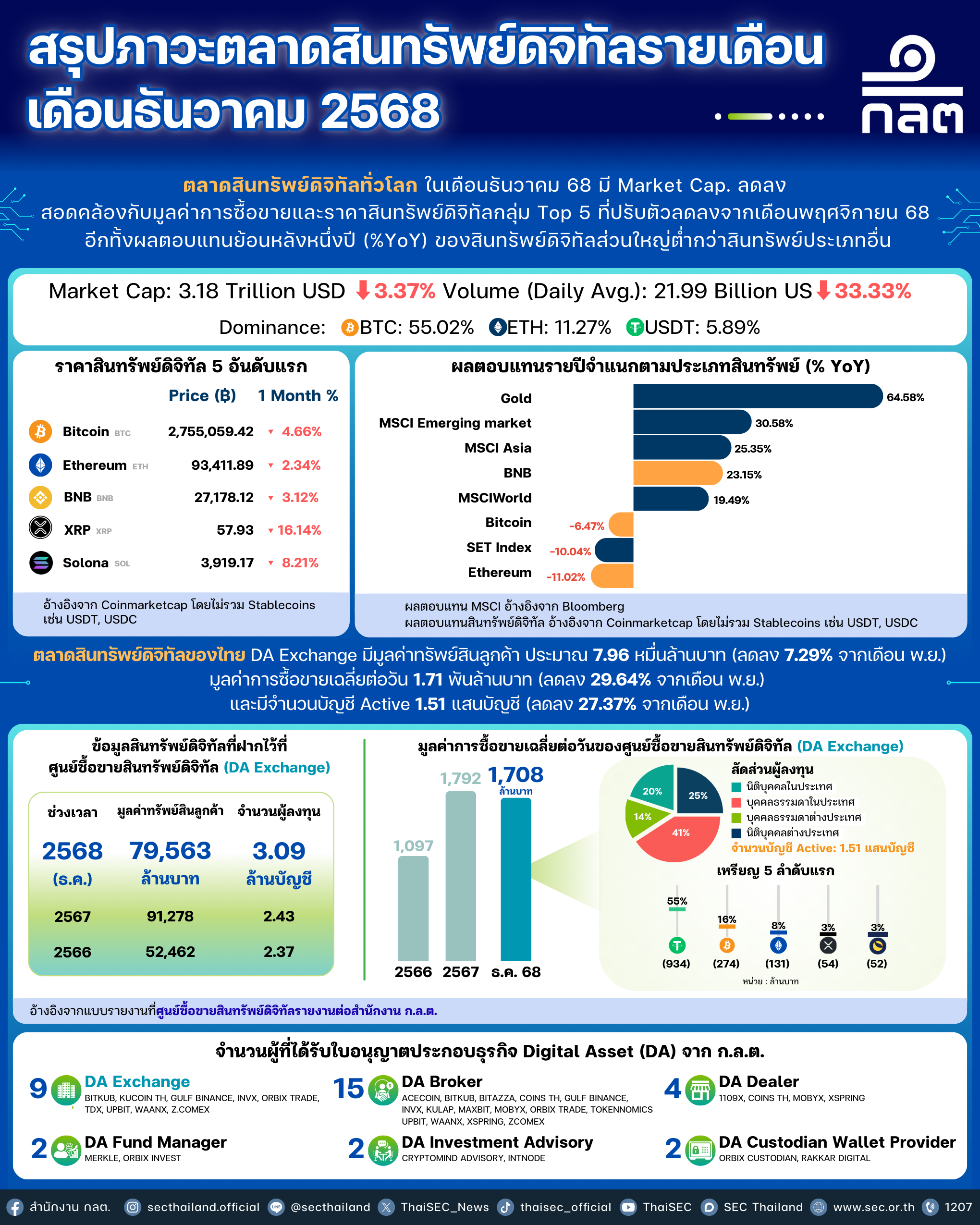 *ก.ล.ต. ปรับการรายงานภาวะตลาดสินทรัพย์ดิจิทัลจากรายสัปดาห์เป็นรายเดือน นับตั้งแต่วันที่ 8 พฤศจิกายน 2567 เป็นต้นไป