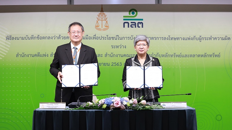 ก.ล.ต. ลงนาม MoU กับสำนักงานคดีแพ่ง สำนักงานอัยการสูงสุด เพื่อเพิ่มประสิทธิภาพการบังคับใช้มาตรการลงโทษทางแพ่ง